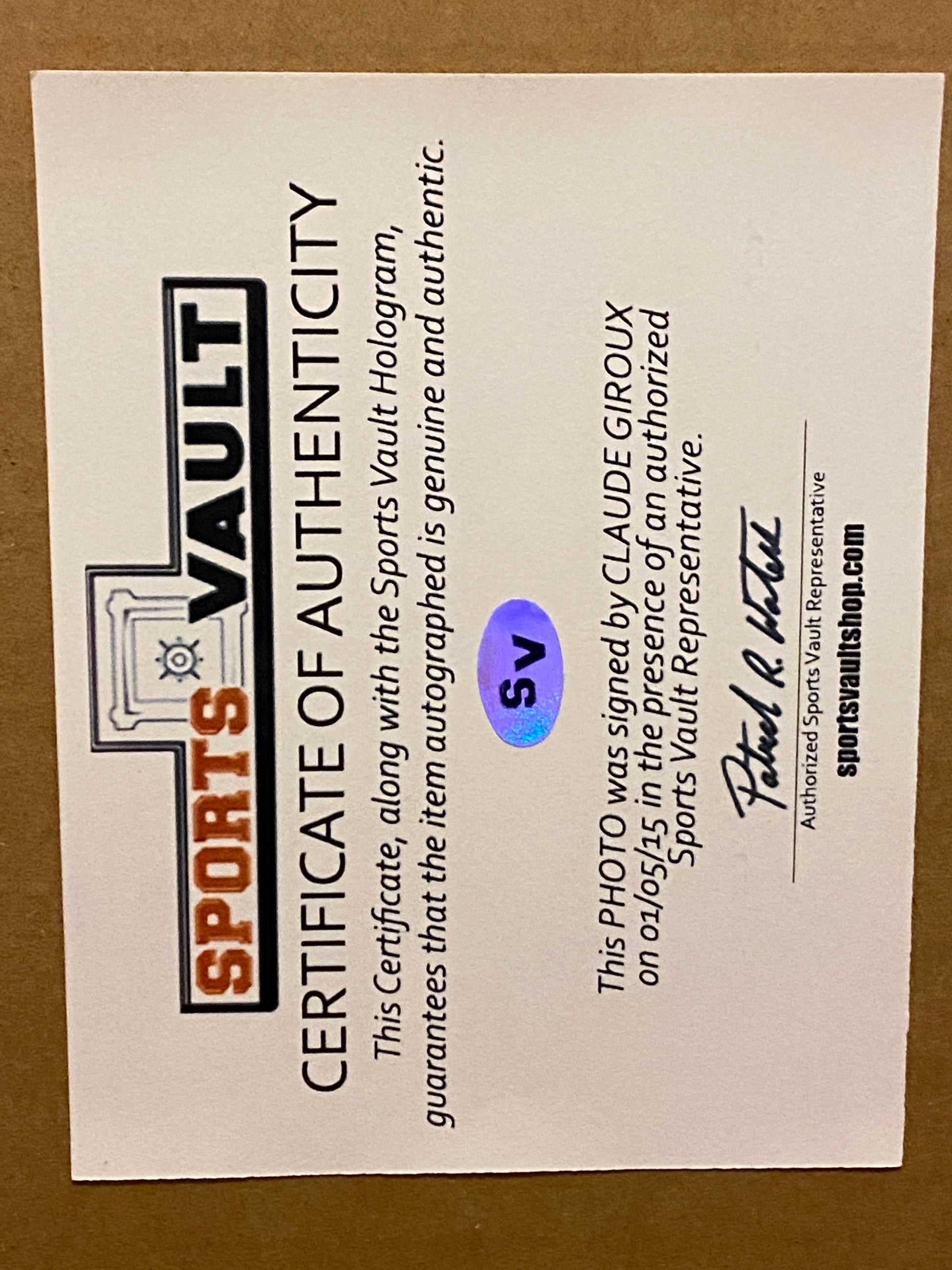 Certified by Claude Giroux Hologram